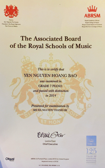 ABRSM là tên viết tắt của “Hiệp hội các trường Âm nhạc Hoàng Gia” (Associated Board of the Royal Schools of Music) được sáng lập từ năm 1889 bởi 4 nhạc viện hàng đầu tại Anh Quốc là Royal Academy of Music, Royal College of Music, Royal Northern College of Music và Royal Conservatoire of Scotland. ABRSM là đơn vị tổ chức thi và cấp chứng chỉ âm nhạc theo tiêu chuẩn giáo dục Anh Quốc gọi tắt là QCF (Qualification and Credit Framework) được công nhận toàn cầu. Đến nay, chương trình ABRSM là hệ thống giáo dục âm nhạc phổ cập hàng đầu thế giới hơn 600.000 thí sinh dự thi mỗi năm từ hơn 90 quốc gia.